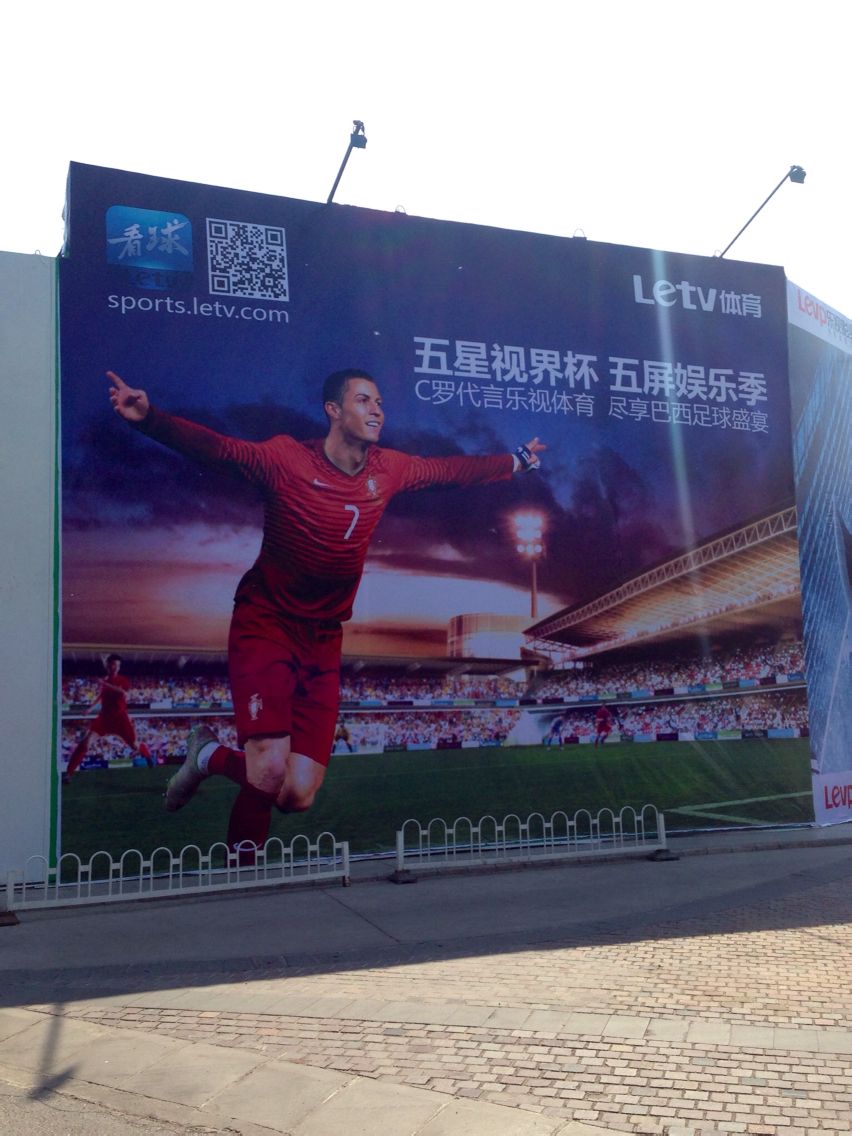 蓝色港湾不是圈了一块儿地皮盖楼吗,昨天去和朋友喝咖啡,看到围挡换上咱家C罗了!!!