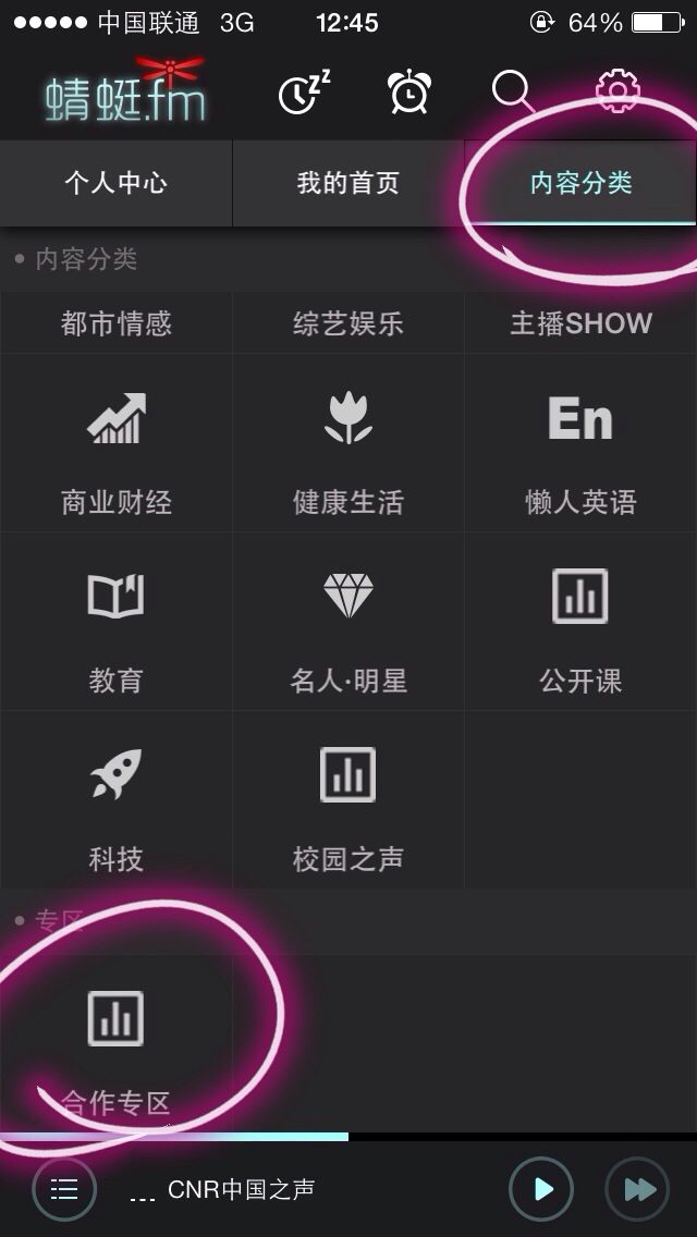 登录之后选择内容分类,然后最下面有一个合作专区