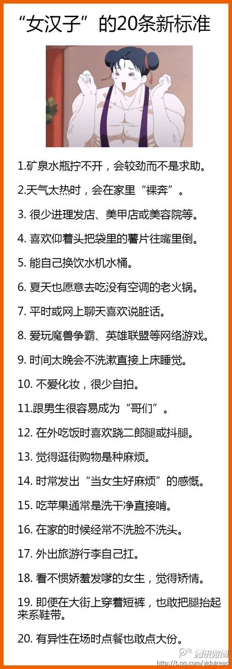 【小棘】女汉子的20条新标准你中了几条。。还敢说你是女汉子么