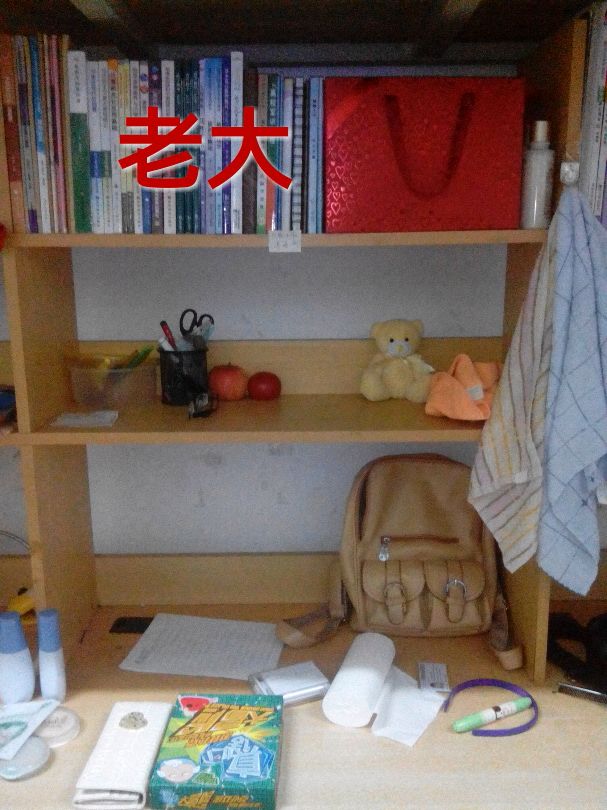 首先是宿舍老大,大姐大的猪窝。附:名副其实的伪学霸一枚。