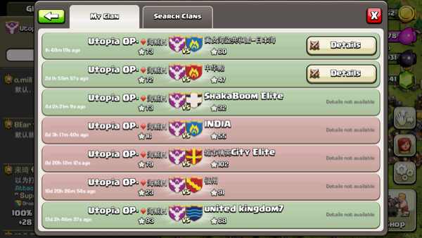 然而好景不长,我没玩多久,大神就afk了。还留了个尽是死鱼的部落,刚开始我也无所谓,也会去coc贴吧看看,然后果断速7。这时,死鱼部落已经满足不了我了,于是我开始物色新部落。不得不说,猿粪啊!我一眼就相中了我们大op!