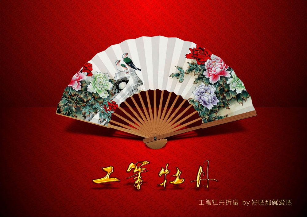 深夜无聊来一发--工笔牡丹折扇