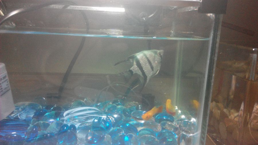 本来两条一起养的,早上起来发现另一条状态不对,捞出来隔离了……发色都差了好多