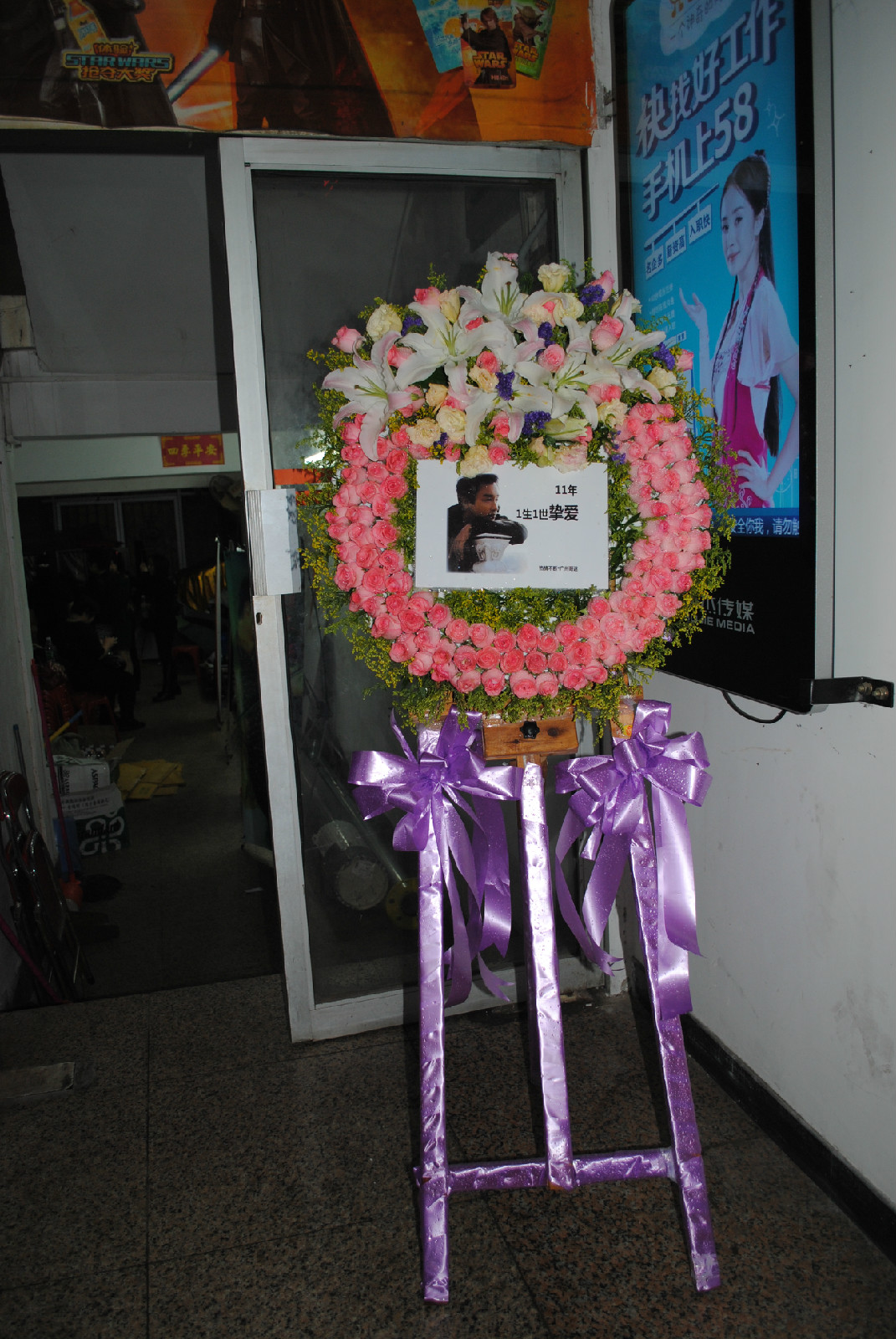 鲜花,海报,填写支持纪念馆明信片宣传,只为表达对哥哥的思念,路人在不断围观,照相