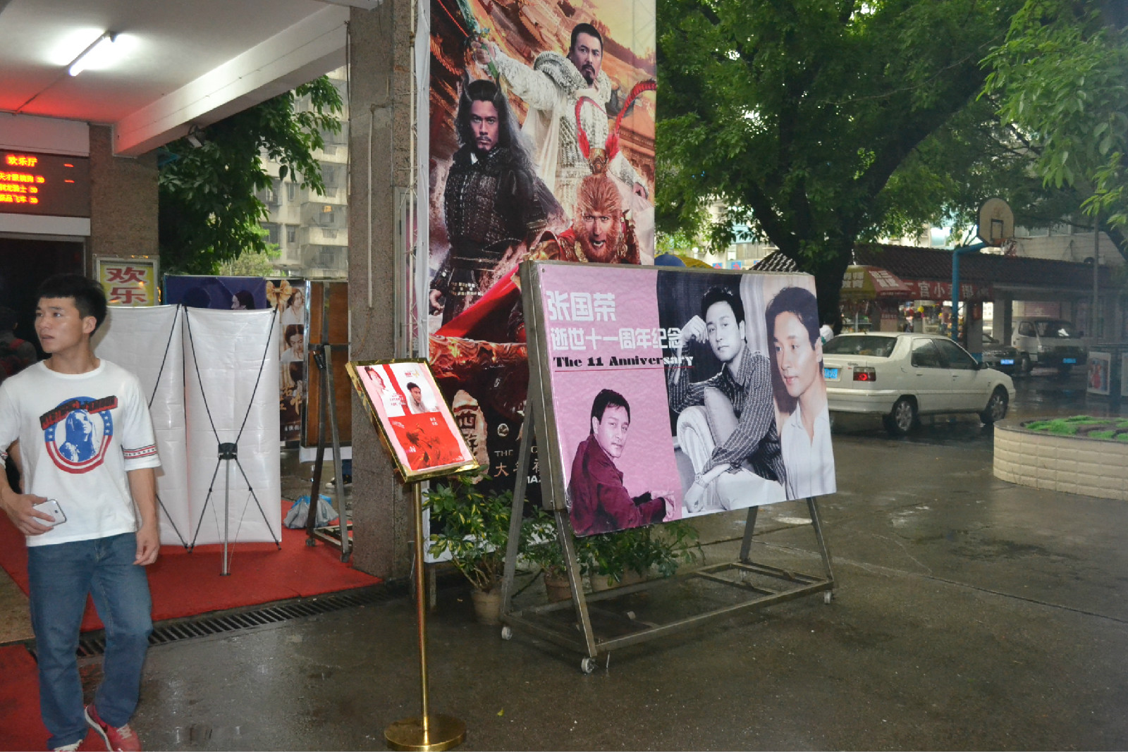 雨中的中午时间,荣迷们风雨不改前来参加纪念活动.