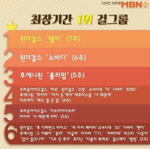 2. Wonder Girls 'Nobody' (6 个星期)