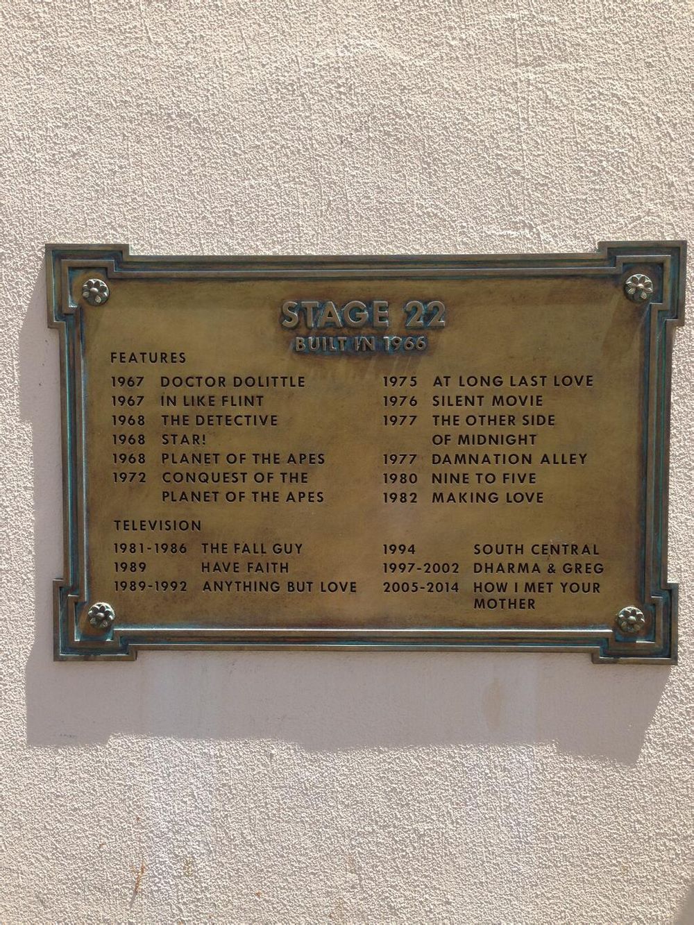 福克斯22号舞台,1966年建造。有这么多电影和剧在本棚里拍摄,最近的就是寻妈记了。