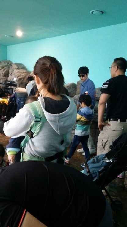 是在海洋馆里面,我猜应该是俊秀跟他爸一起签名那天拍到的,看起来是同一件外套