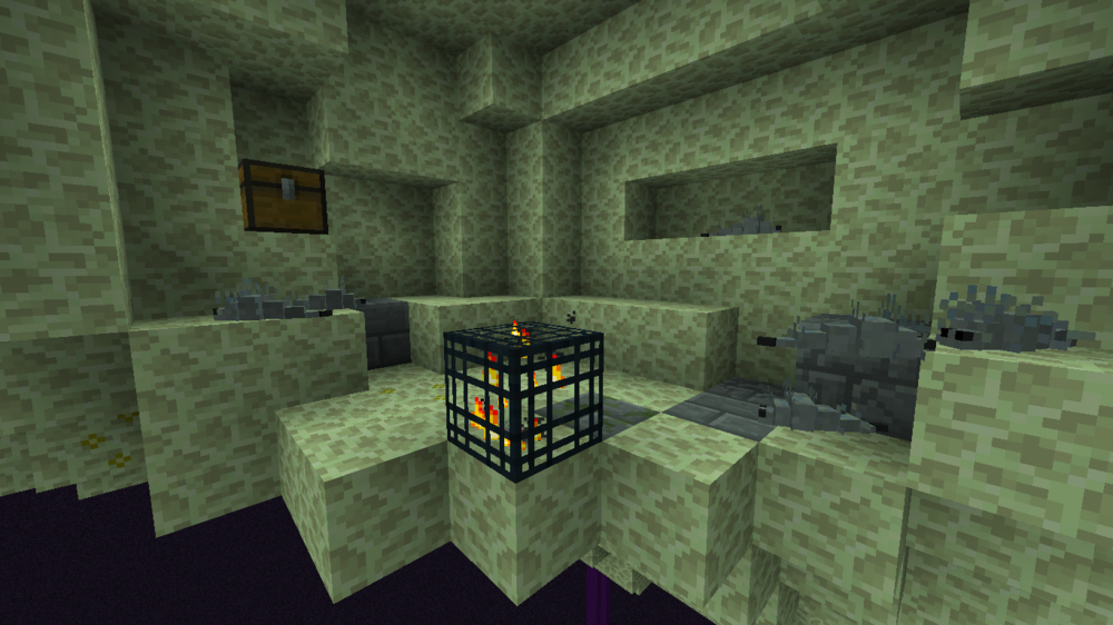 腐化之森(Infested Forest):由幽灵树形成的一片悬空森林陆地,地表由腐化末地石组成,地面还长有腐化蕨、腐化灌木和荆棘丛,荆棘丛能伤害它周围的生物(伤害血量1心左右)并使之有中毒debuff(大概5秒)。腐化之森生物有腐化蝙蝠、蠹虫和小黑,具体说明在生物篇。此外,岛上还有蠹虫地牢(一个岛上应该有多个)。另外补充一点,只要在腐化之森的腐化末地石上都会有几率中虚弱、迟缓、疲劳debuff,甚至更小几率还会中失明、中毒和反胃debuff。(后面内容有介绍一种药物能使腐化之森的对人的腐化几率为0%)