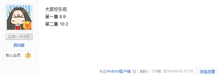 首集收视竞猜活动,有两位吧友准确猜中,成绩以AGB全国数字为准,8.9!