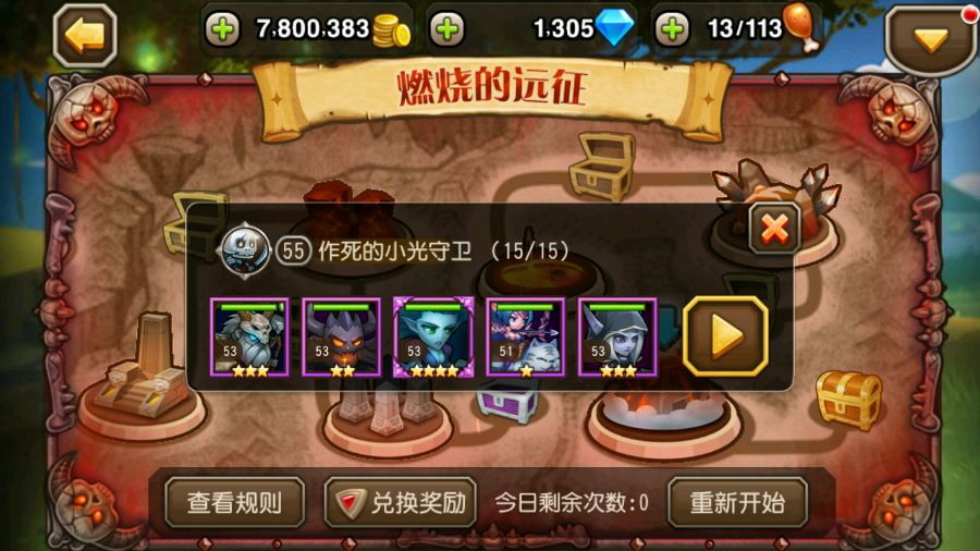 15关遇到这么牛逼的队伍,四星紫2dp啊!!!五人全紫啊!!!最后一个金箱子一定是好东西吧!!!结果,就3个祭品卷轴啊