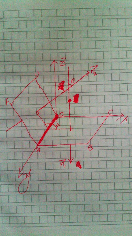如图,建立直角坐标系。因为不难看出,此时我作的面OAFD的法向量是沿着x轴正方向,面OABC的法向量是沿着z轴负方向的。则该二面角-α即为此时两法向量的夹角,而不是其补角西塔角。