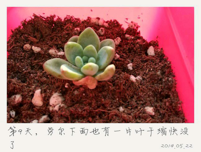 红化妆和劳尔状态差不多,都是下面叶子开始干缩,红化妆两片、劳尔一片,两人都有一片已经干得要掉要掉的感觉。按照卖家指示,补了1/3小方的水量,兜头浇