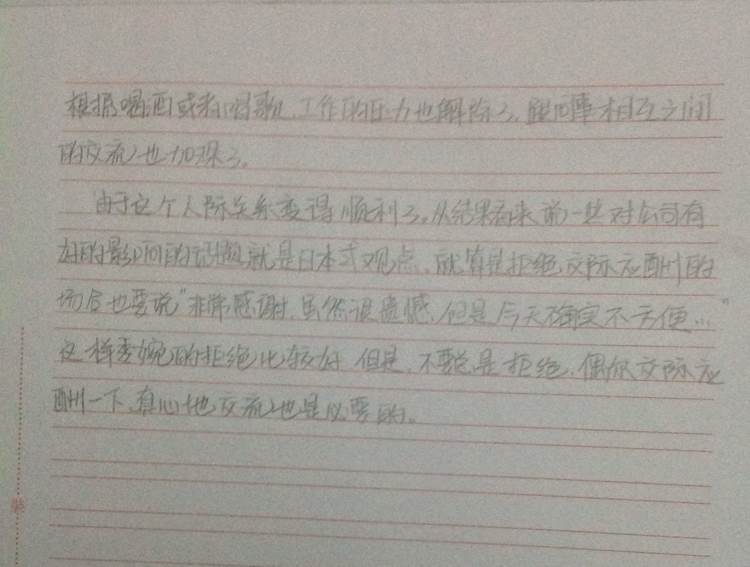 ② 外国人社员 ジョンソンさんは一年前にアメリカの电化制品の会社から、日本の今の会社に転职しました。今の仕事は前の仕事より给料が少し安いですが、やりがいがあって楽しいと言っています。日本の会社の休暇はジョンソンさんの国の会社よりずっと少ないですが、仕事がおもしろいから、ジョンソンさんは嫌だとは思っていません。経済に関心を持っているジョンソンさんは日本経済新闻を取っています。杰森先生在一年前从美国的电器公司转到了日本现在的公司。现在的工作虽然比以前的工作工资要稍微少一点,但是杰森先生却说因为值得而快乐。日本的公司的休假虽然比杰森先生的国家的公司休假要少得多,可是由于工作很有趣,所以杰森先生并不觉得讨厌。对经济一直很关心的杰森先生一直都拿日本经济报纸。(我自己看不下去了=。=)