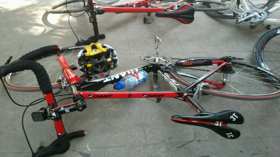 朋友帮忙组的公路车,配置如下 GIANT OCR 3500车架 SHIMANO FLIGHTDECK 手变 SHIMANO SORA套件 牙盘、后拨、刹车都是3700的配置 GIANT全黑超轻铝合金前叉 BONTRAGER 700C公路轮组 车架红黑色 18速!