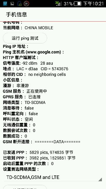 亲爱的红牛工程师们,今天收到你们的系统更新,各种更新就先不说了。先说说3G信号的问题,原来信号显示一格两格现在直接显示满格了。查看手机信号dBm电平强度,和以前跟本就没有变化。不知道你们红牛工程师是豆逼还是把我们用户当小白。移动3G〈TD-SCDMA〉-89dBm都能显示满格-91dBm显示三格信号,你们知道吗看着信号满格却打不了电话上不了网,那感觉看着好让人好桑心啊~不知道你们对信号显示分格有没标准。