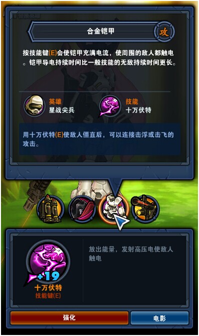 还有个选择,是星战尖兵的“合金铠甲”,可以把周围的敌人电晕,可供你从容逃跑或换近战英雄反击。