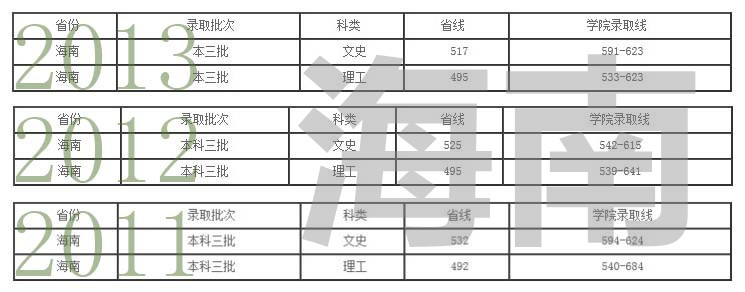 7楼——2011-2013年在各省(自治区、直辖市)艺术类录取分数