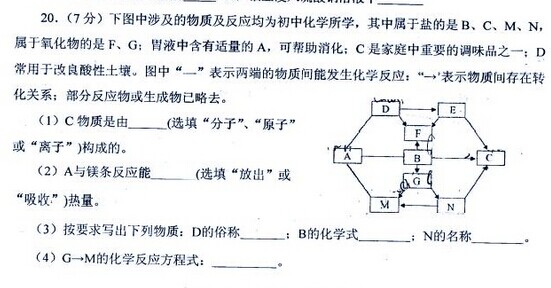 B C M N 是盐 F G 氧化物 胃液中有适量A助消化 C是加重重要调味品 D 改良酸性土壤