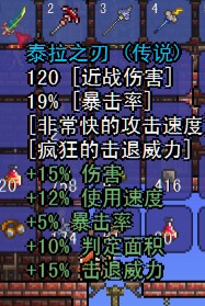 回复 starscot :说实话,泰拉刃在1.2.4以前都不能连发,很不实用,明白人都用南瓜刃。新版泰拉刃可以连发后,他才逐渐摆脱“仪式之刃”的名字,在玩家手里普及。
