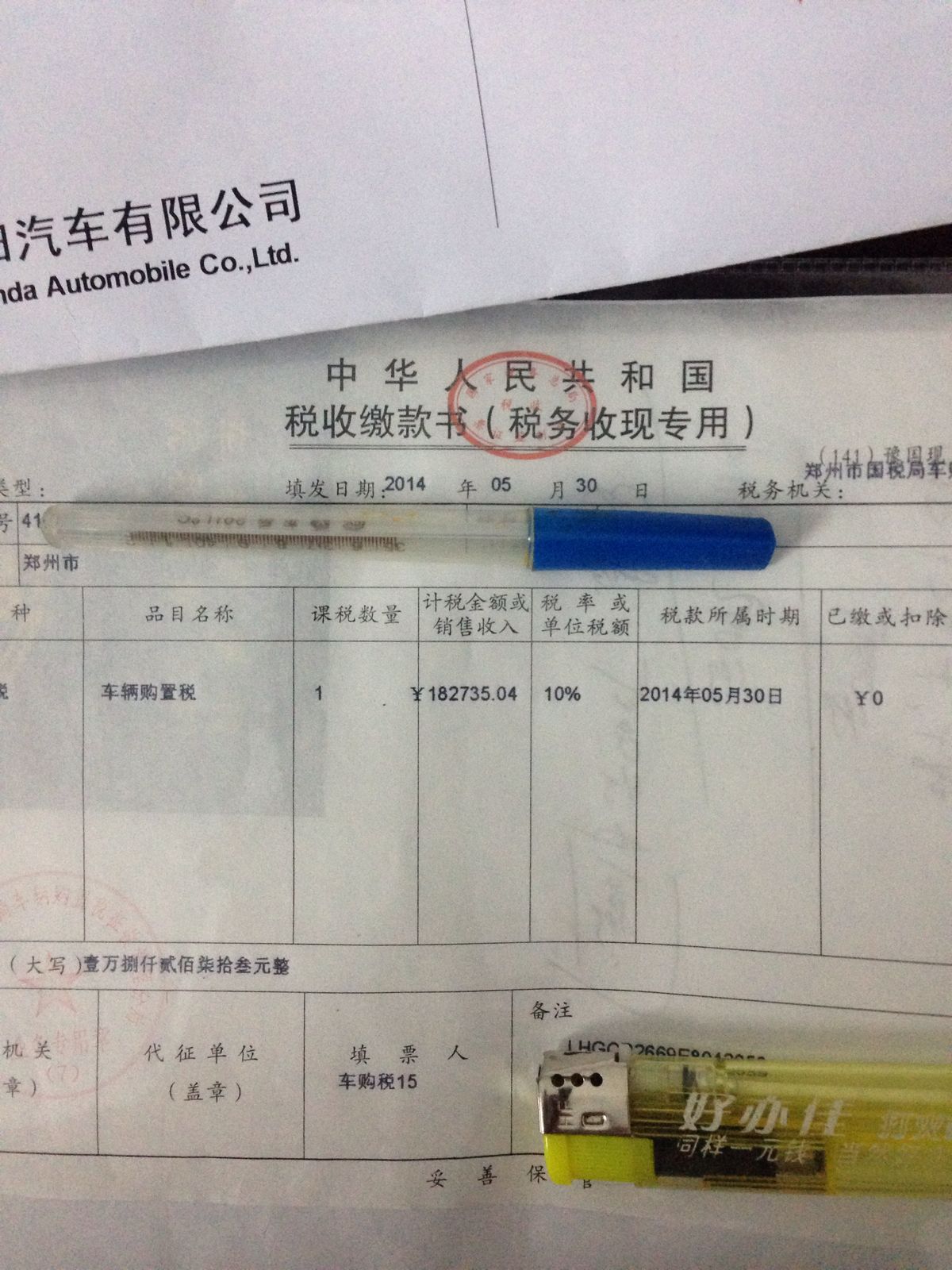 车回来了,比4s店预计到的时间晚了一星期多。刚开到家,太晚了不清晰。车图就不放了,明天再放。钥匙 税本先来一张,2.4豪导,3.19的车,8公里