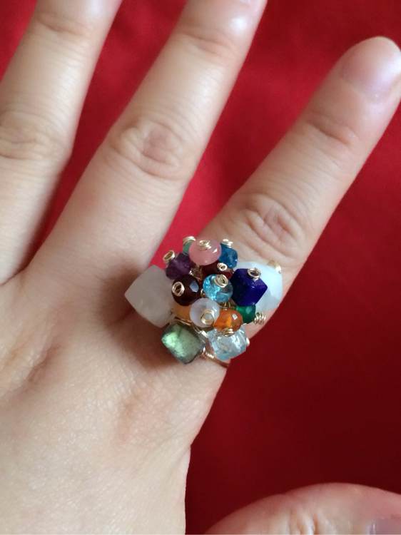 珍珠小花戒指是前几天刚绕的。小古着的味道。配的红珊瑚和绿橄榄啦啦啦!