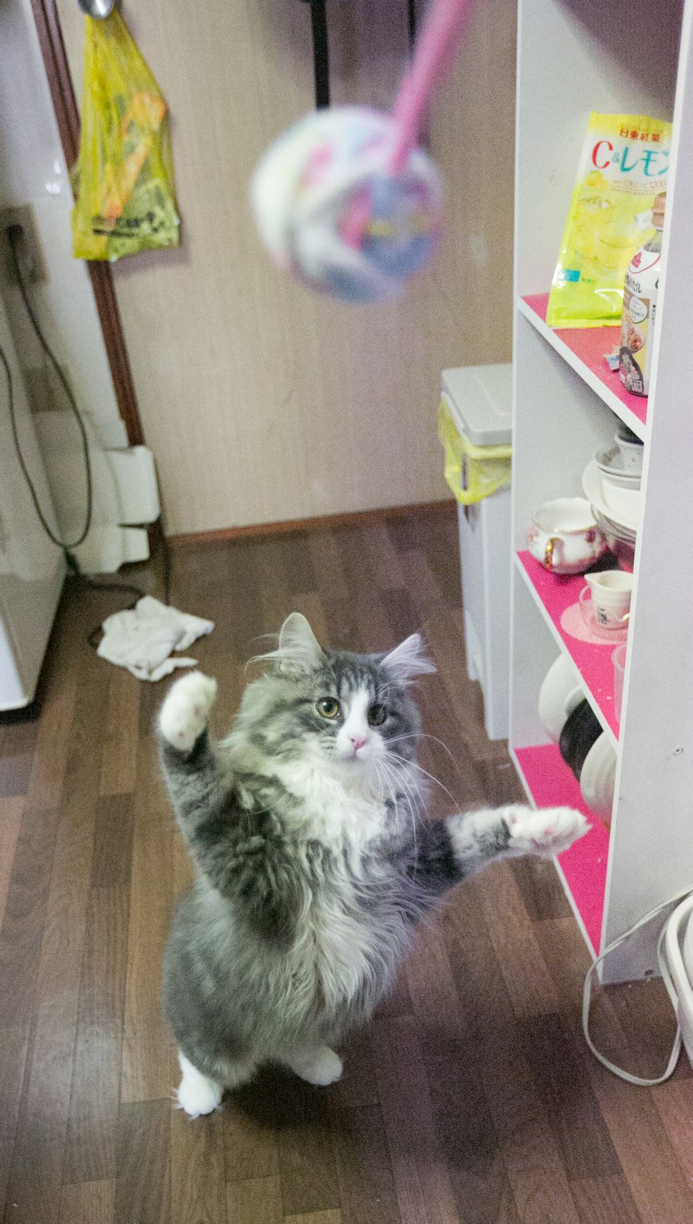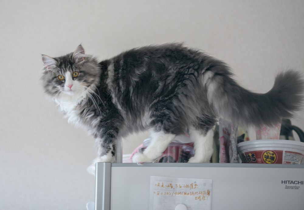 搬新家后,桃桃喜欢站在家里最高点的冰箱上,俯瞰自己的领地