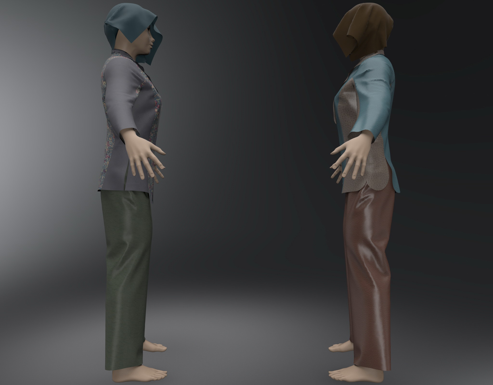 1CM是指外衣与人体的间隙,你可以看见我的模型没有穿内衣!我不是不给穿,而是那样运算的速度很慢,而且好像这个软件不支持硬件加速,对INTEL的CPU支持的好很多!