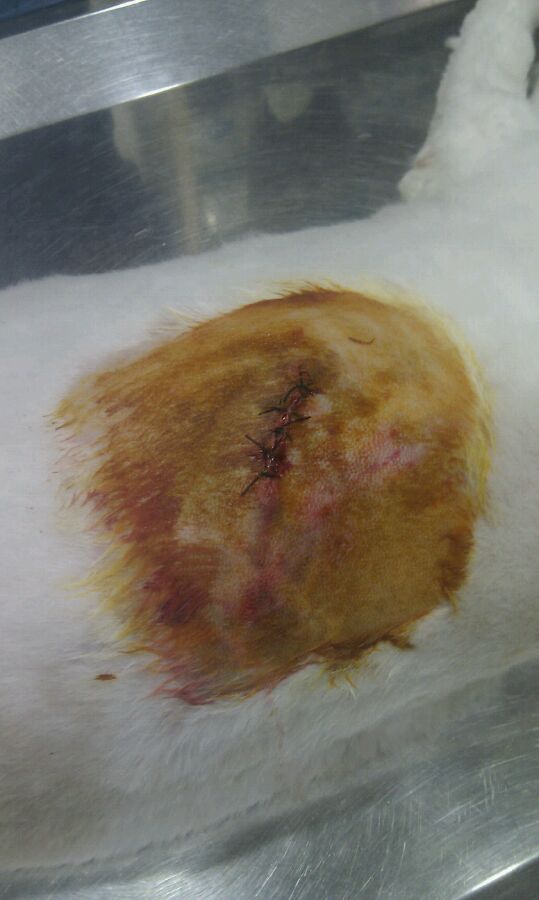 嗯,后来赔了台币3k,礼拜天拆线、昨天洗澡,已经好多了,我楼下在放个昨天拍的照片