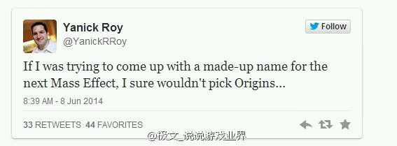 《质量效应4》还未正式公布,但今天BioWare蒙特利尔工作室开发总监Yanick Roy在推特上辟谣,称新《质量效应》不会选择“起源”作为游戏副标题。此外,他还表示会出席EA的E3发布会,或许意味着他将会登台正式公布ME4的新消息。
