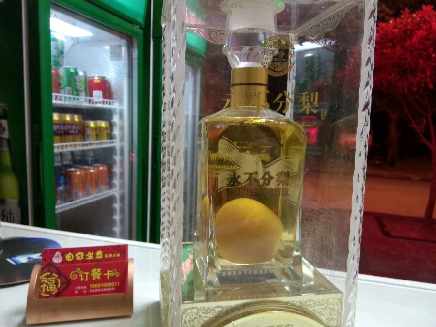 估计梨子还在开花的时候,就把花塞进瓶子里,慢慢长大成梨子,然后把酒灌进去。