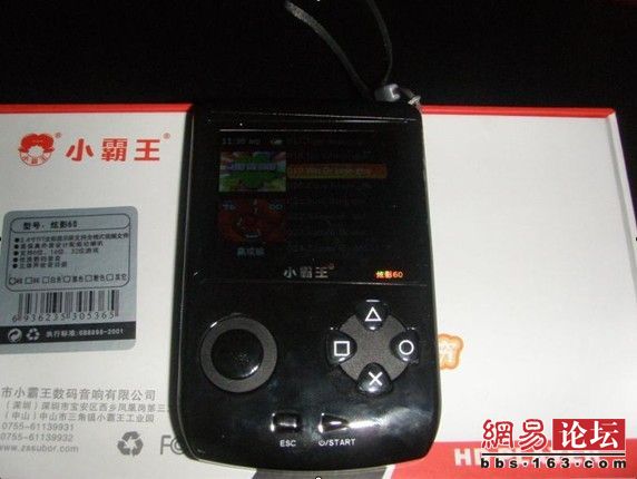 小霸王眩影60,应该定义是MP4掌机吧,能玩玩GBA、FC之类的游戏,所谓优点就是声音够大,但是缺点也是这个,声音不好调节,玩游戏还有震动,只是这个震动也不知道怎样关掉。