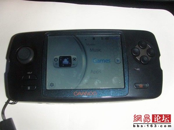 GPH的CAANOO,2010年的机器,应该说是WIZ的升级版本了,CPU是一样的,都是533的,可以稳定超频到700以上,同样带3D硬件加速,内存从WIZ的64M加大到128M,屏幕从WIZ的2.8寸的OLED触摸屏改为3.5寸的LCD触摸屏,加了震动等功能。USB接口带USB HOST功能。带TV-OUT功能。也是使用基于LINUX的开源系统。