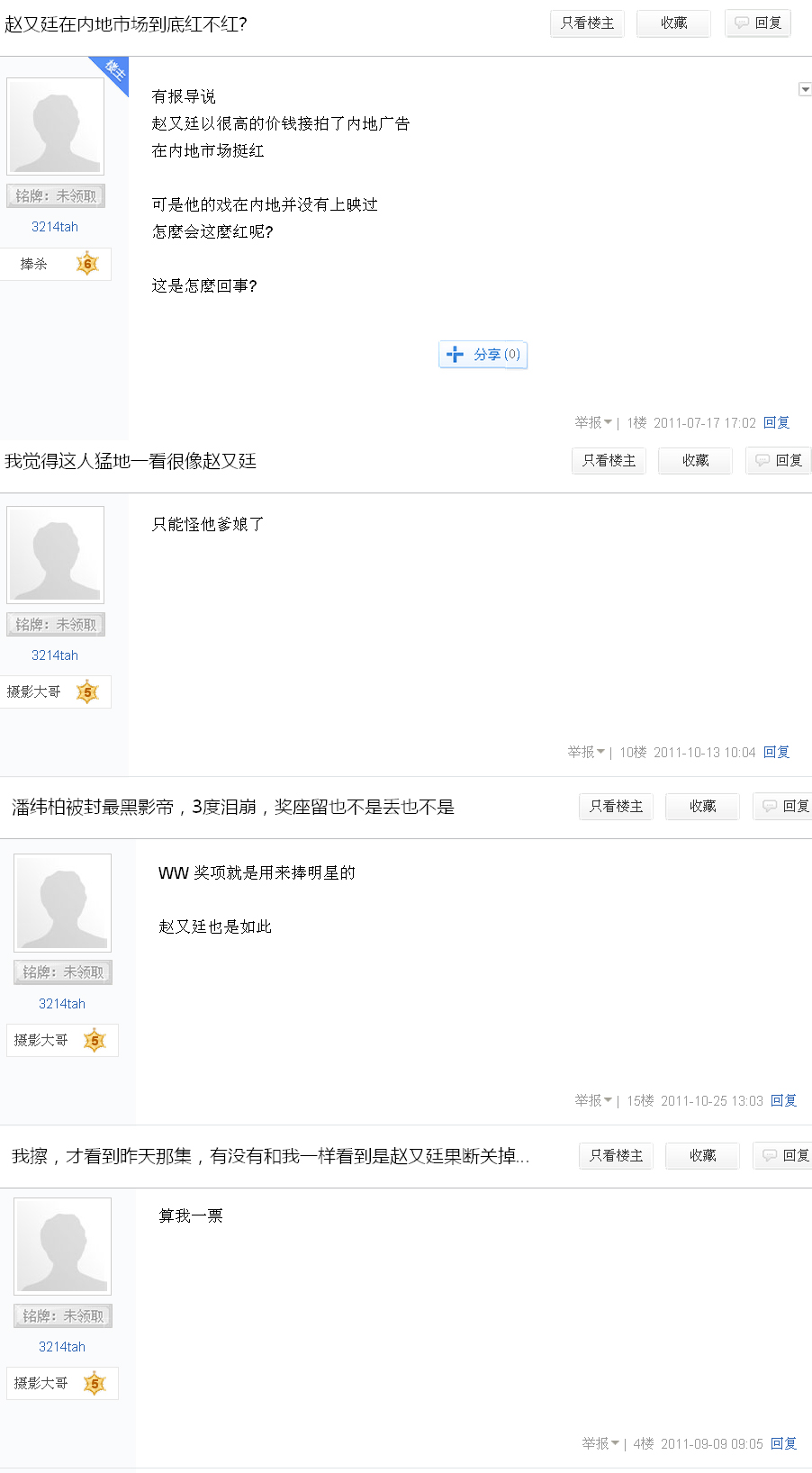 回主子吧里哭诉啊。。。啧啧,果然跟周渝民一样走肾虚路线。