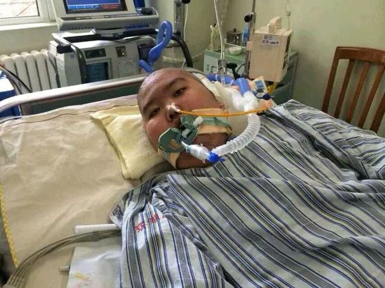 2014年6月,他的病情又恶化了。部分同学和老师到医院看望他,他已经转到了重症病房。已经完全看不出他的样子,身上遍布密密麻麻的插管,长期的激素注射让他看上去十分脆弱,不间断的麻醉注射,也让他失去了意识。我们抑制住了眼泪,开始介绍自己。他动弹不得,只能点头,摇头。无论我们说什么,他都只是不住地摇头,但是当妈妈问他是否记得自己是天津一中八年六班的学生时候,他点头了,然后看了看我们。