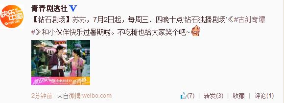 【青春剧透社】7月2日起每周三、四晚十点‘钻石独播剧场古剑奇谭