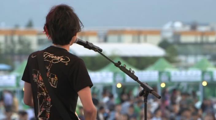 风巨大,他唱那女孩对我说的时候自己都忍不住笑,一直拨头发甩头发