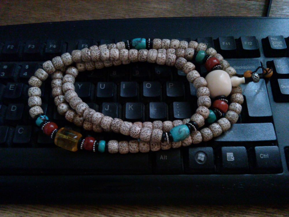 11的星月珠子,又自己配了两个南红做对珠,一个绿松做佛头。想再入一个蜜蜡做勒子,还想入青金石,其他就不知道怎么配了。求指导