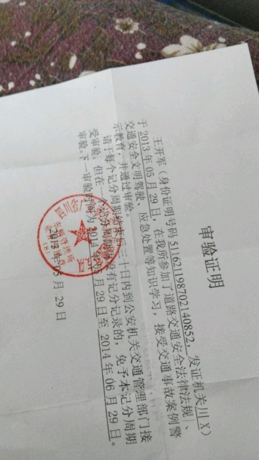 5月29号 没扣分 审过了 明年5月29号再来