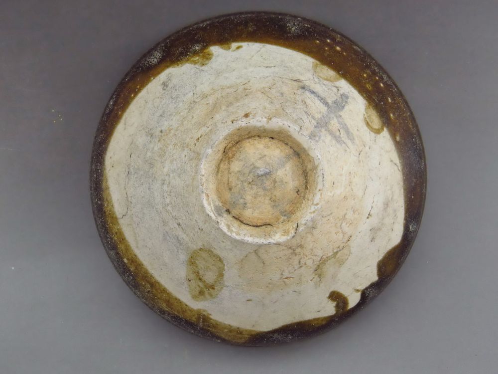 口径10厘米,高4.5厘米。器型端正,口沿施白色釉,对比强烈,底釉墨书款,十分精美的茶具。