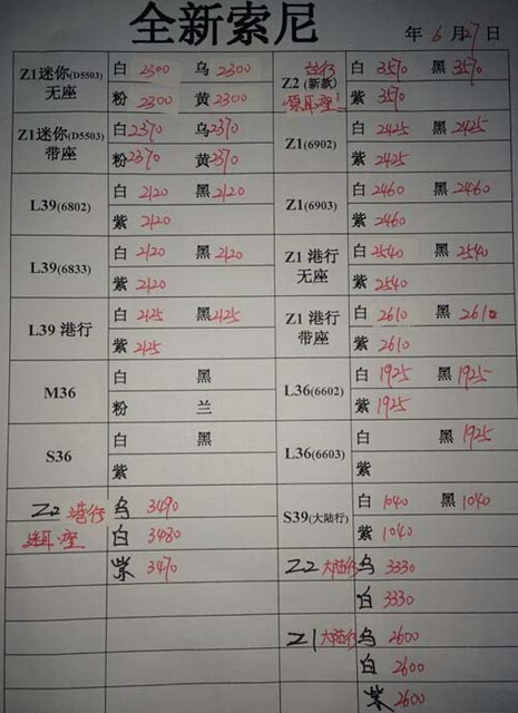 索尼报价每日更新,给吧友一个参考(每天更新)