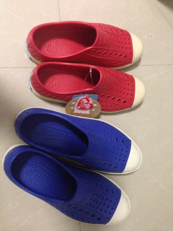 吧主帮我看看这两双是不是真的。蓝色的喷漆款我已经穿过了,红色围条款今天才到,要送女友的