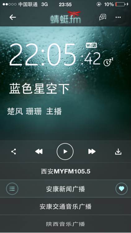 今天在微博上看到在蜻蜓FM上可以收听安广了 今晚特意收听了下 还是熟悉的蓝色星空下