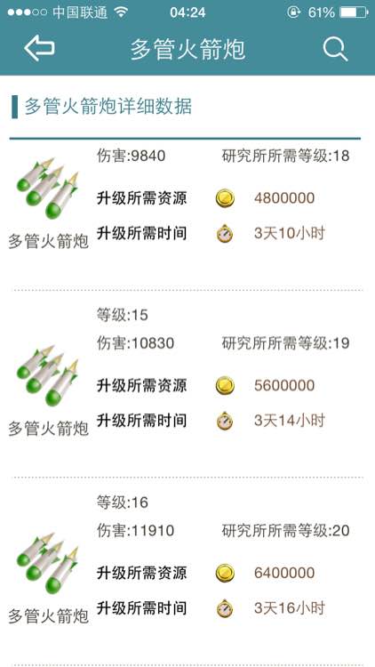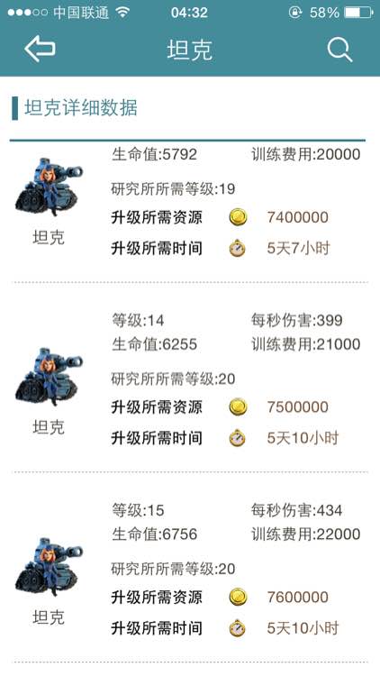 以下图片,看满级时的所需资源数据