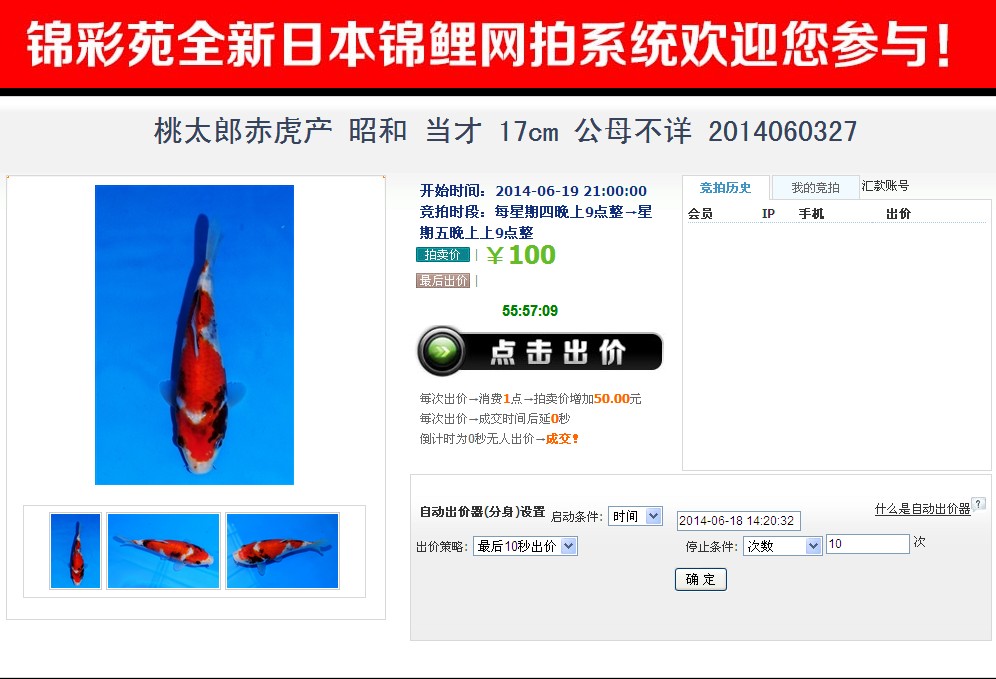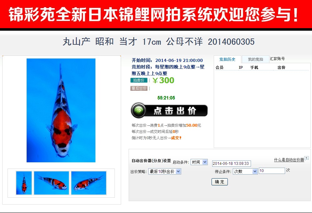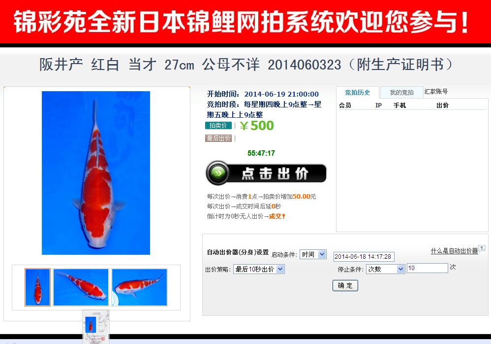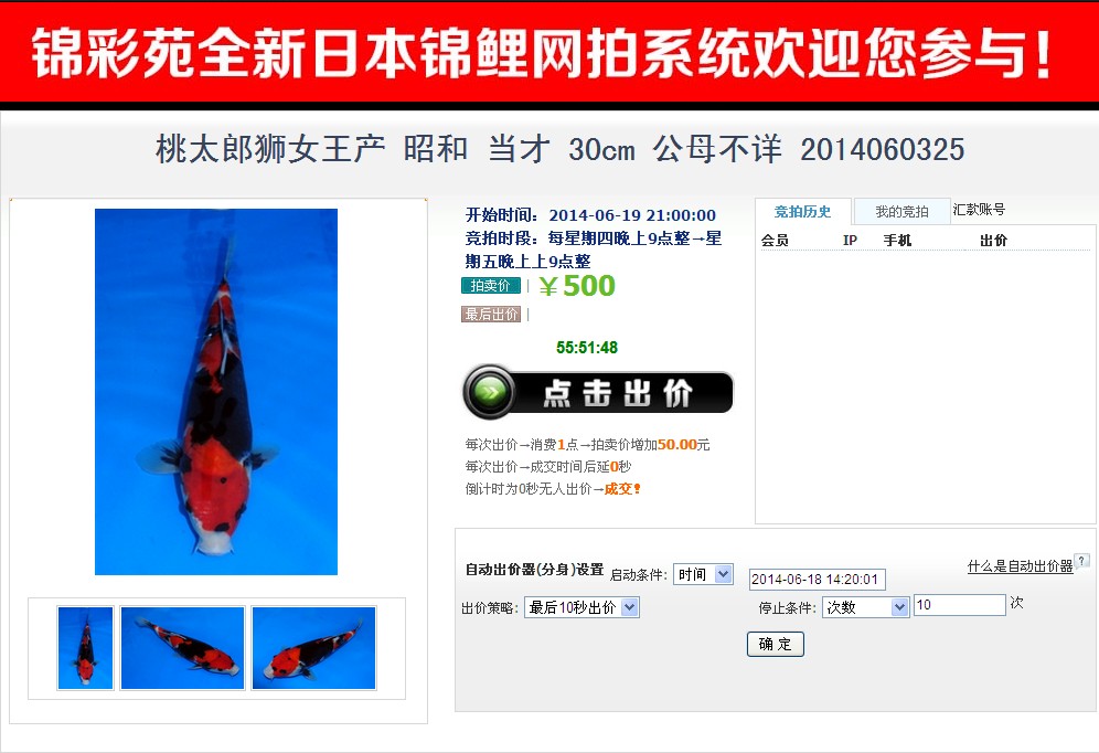 锦彩苑第三期日本锦鲤网上拍卖会于本周6月19日星期四晚上9时开始!