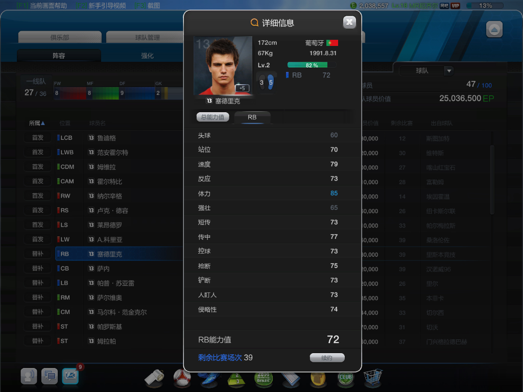 这货是个人比较喜欢的前锋,射术。强壮,速度都有,有点阿坤的感觉!