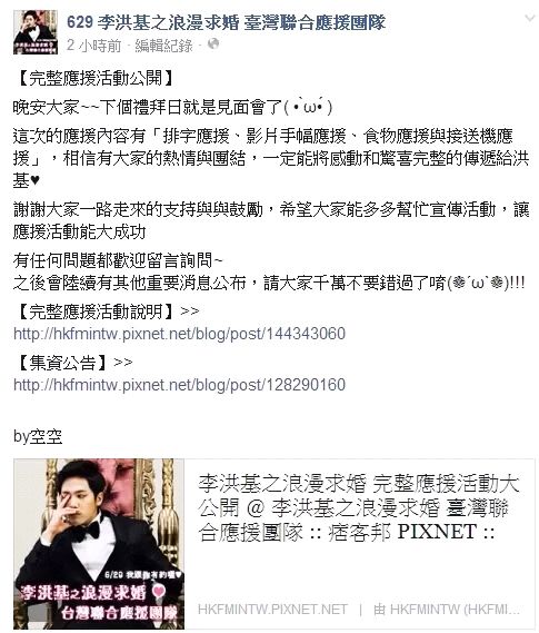以下是这次「李洪基之浪漫求婚 台北场」 完整应援活动。希望大家趁最后这几天,除了熟悉所有应援活动外,