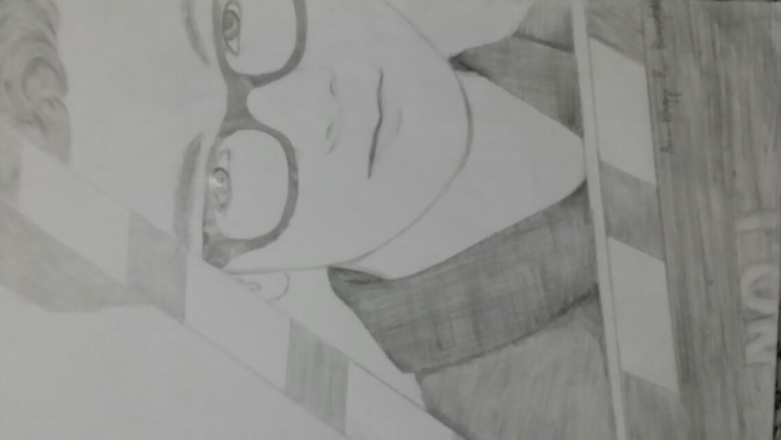 画的好棒!!就是有点点小瑕疵,一点点哦,只有一点点。眼睛画小了一点(不过画的很像),嘴角那一点上扬的弧度没有了,没那么有神韵了。。右边的眉毛斜了,眼睛的两个点点没了。。(对不起曾经学过素描观察的比较仔细。。sorry)