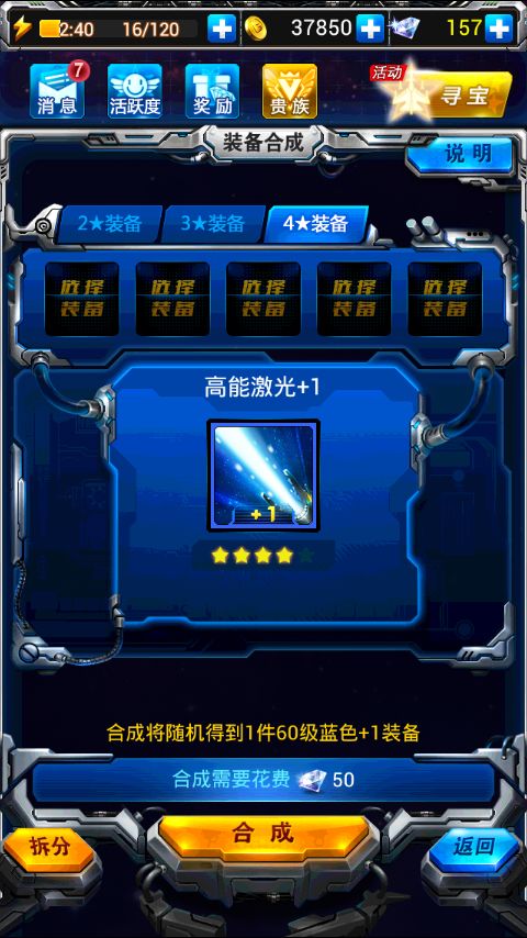 其实现在出的合成系统也不错,5个4星合成出垃圾也不亏27万多经验50钻换值得!恭喜你,直接出蓝1