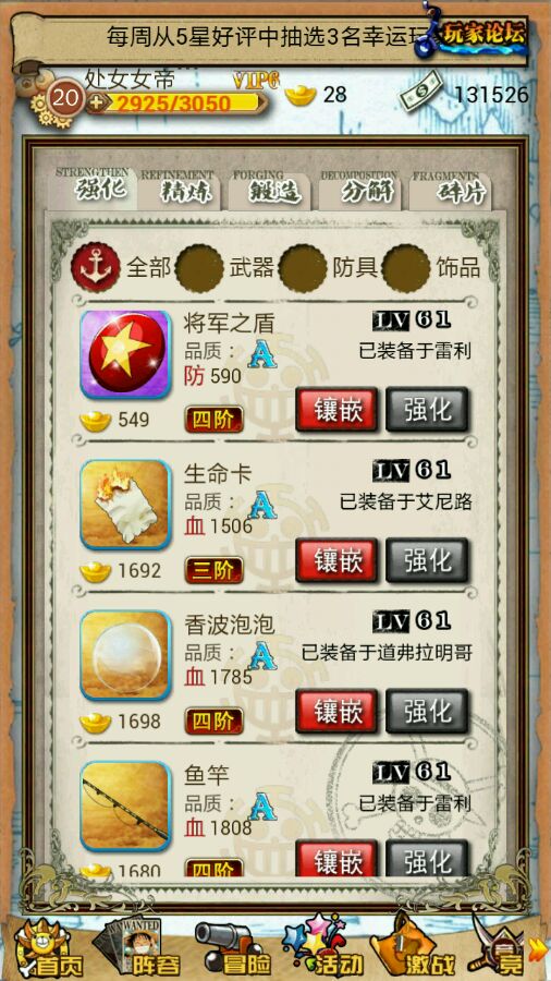 这是目前的防具。
